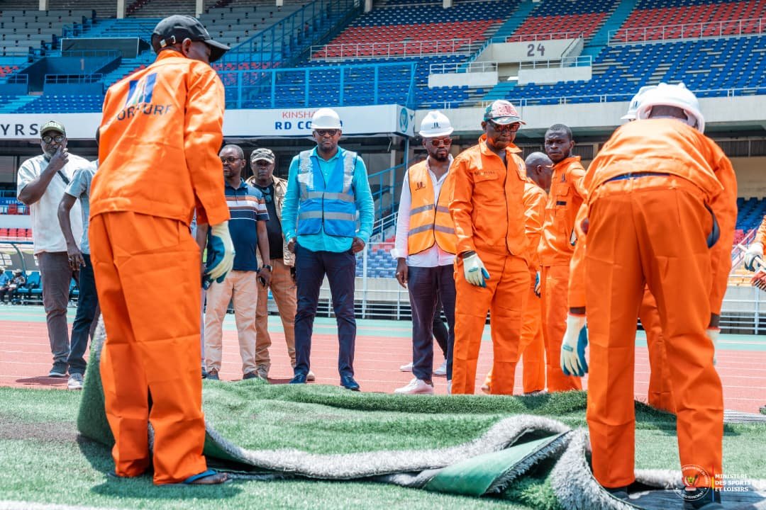 MODERNISATION DE LA PELOUSE DU STADE DES MARTYRS : LANCEMENT DES TRAVAUX DE L’INSTALLATION.