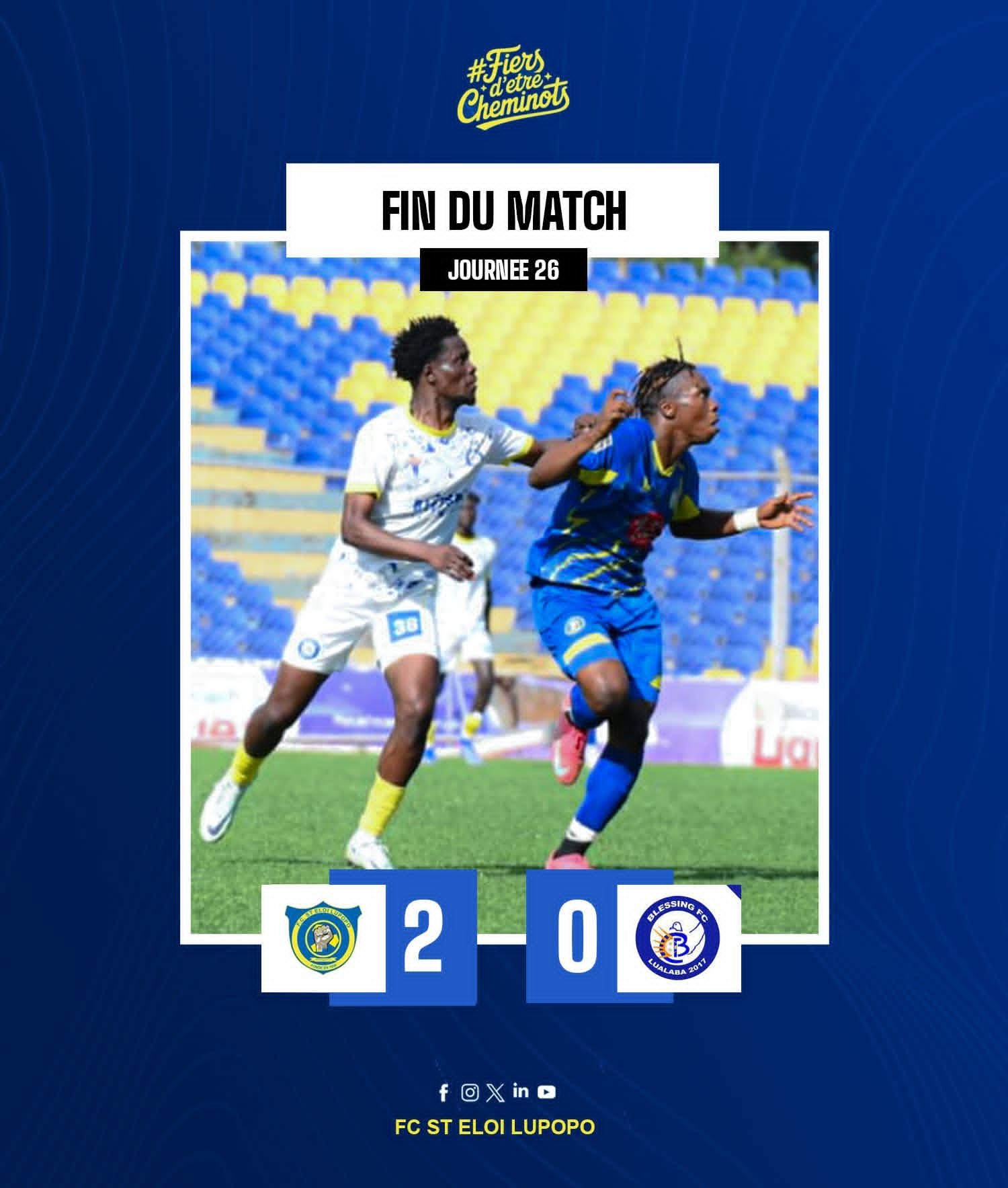 Le FC Saint-Éloi Lupopo s’est imposé avec autorité devant le FC Blessing sur le score de 2-0, jeudi au stade Kibasa Maliba de Lubumbashi, à l’occasion de la 28e journée…