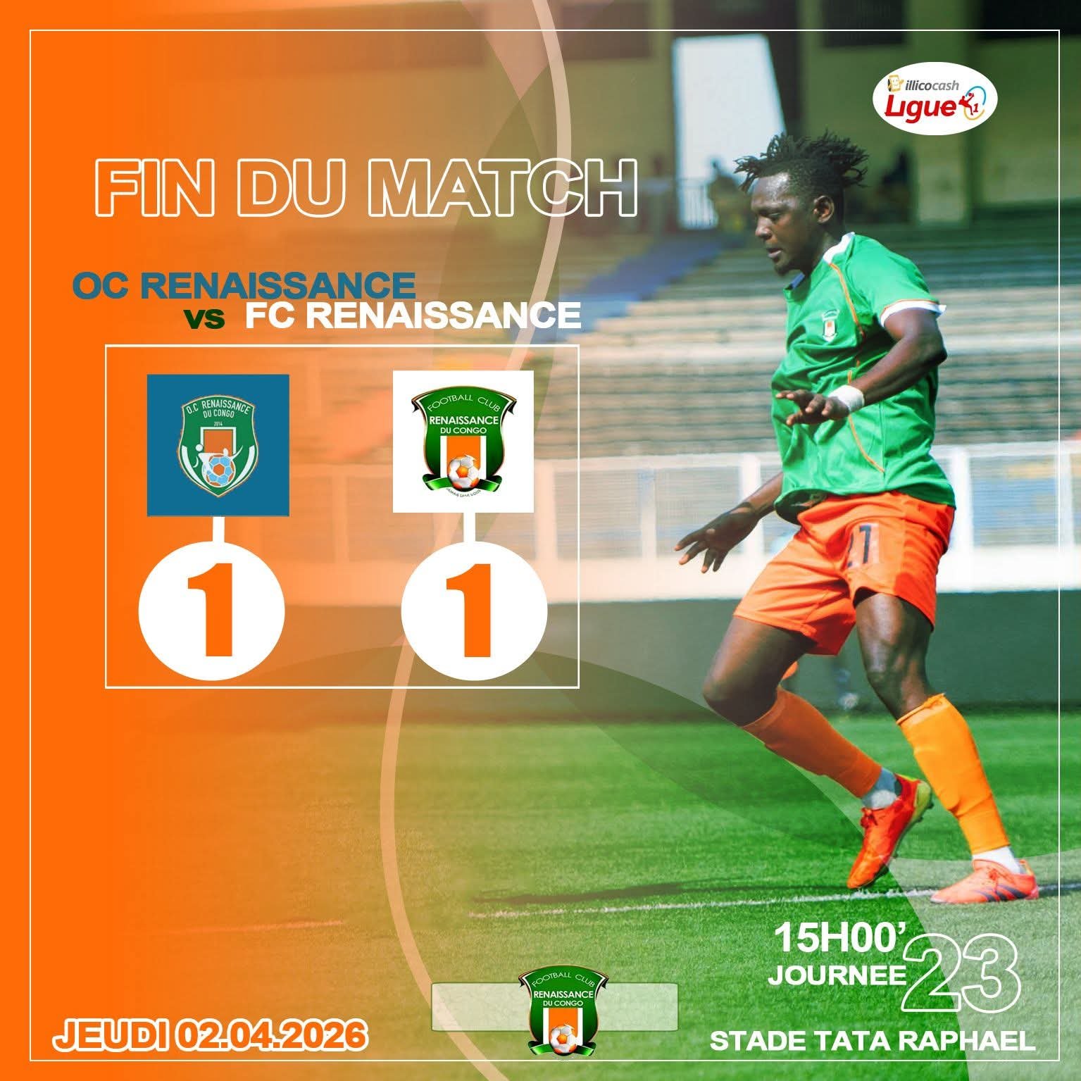 L’OC Renaissance du Congo et le FC Renaissance du Congo se sont neutralisés sur le score de 1-1, jeudi au stade Tata Raphaël de Kinshasa, à l’occasion de la…