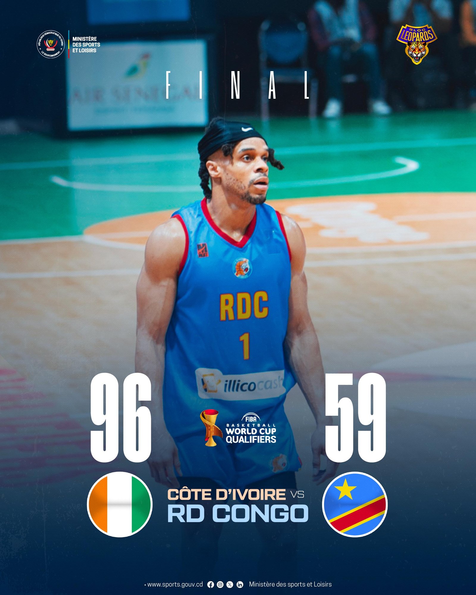 Les Léopards de la République démocratique du Congo ont essuyé une lourde défaite face aux Éléphants de la Côte d’Ivoire (96-59), samedi, au Stadium Marius Ndiaye, lors de la deuxième journée du groupe B des éliminatoires du Mondial Coupe du monde FIBA QATAR 2027.